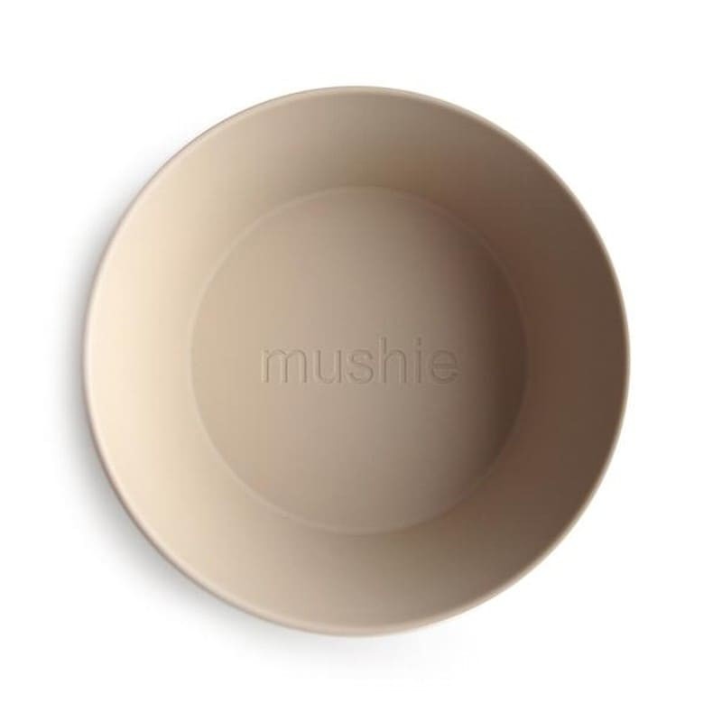 Mushie 2 miseczki Round Vanilla – bezpieczne, trwałe i wygodne miseczki dla dzieci, idealne do samodzielnego jedzenia.