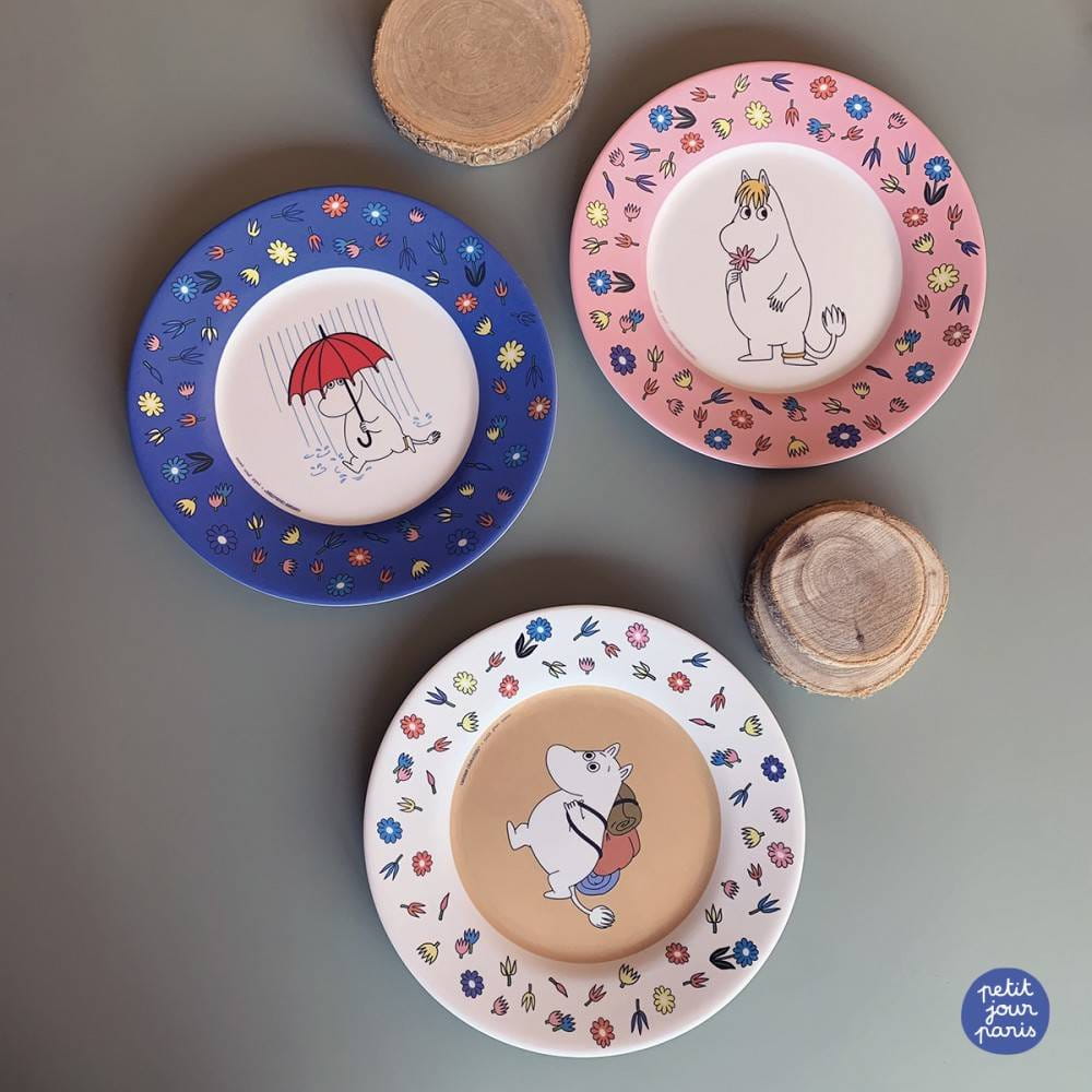 Kolorowy talerz Petit Jour z grafiką Muminków dla maluchów od pierwszego kęsa. Bez BPA, trwały i łatwy w czyszczeniu. Idealny prezent dla dziecka.