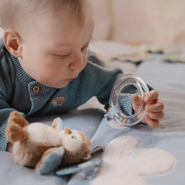 Interaktywna mata aktywizująca Forest Friends od Little Dutch. Mata podłogowa to mięciutki i przytulny dywanik, który ma wiele do odkrycia. Zabawa szeleszczącym liściem, miękką chmurką, liskiem czy sówką stymuluje dotyk i słuch malucha. Znajdziecie tu także grzechotkę - przezroczyste kółko z trzema małymi koralikami, gryzak oraz lusterko - uwielbiane przez dzieci. To wszystko dostarczy maluszkom dużo ciekawej i rozwijającej zabawy. Mata to doskonałe uzupełnienie do pozostałych produktów z kolekcji Forest Friends. Wspaniały pomysł na prezent.