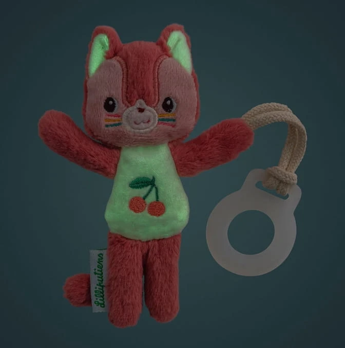 Mini-przytulanka do spania Kotka Jeanne marki Lilliputiens to idealny pierwszy przyjaciel maluszka. Miękka, bezpieczna, z fluorescencyjnymi elementami i możliwością przypięcia smoczka. Pomaga w zasypianiu i wyciszeniu.