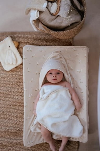 - Praktyczny i funkcjonalny – myjka i ręcznik ułatwiają codzienną pielęgnację noworodka.