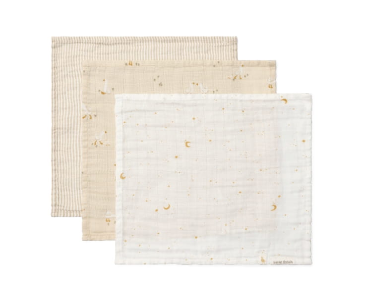 Chusteczki muślinowe Little Goose od Little Dutch wykonane w 100% z organicznej bawełny. Miękkie, chłonne i delikatne dla wrażliwej skóry dziecka, idealne do pielęgnacji, karmienia i zabawy. Zestaw 3 sztuk w stylowych wzorach.