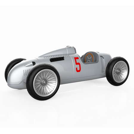 Samochodzik Auto Union Type C od marki Baghera to wyjątkowa zabawka inspirowana słynnym wyścigowym samochodem z 1936 roku, zaprojektowanym przez Ferdinanda Porsche i prowadzonym przez Bernda Rosemeyera. Ten legendarny model – jedna ze słynnych Srebrnych Strzał – zdobył tytuł mistrza Europy i ustanowił rekord prędkości, a teraz może stać się ulubioną zabawką Twojego dziecka.