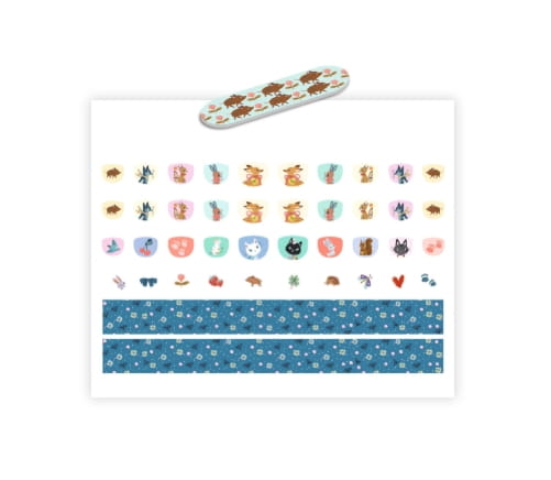 W zestawie znajduje się 90 naklejek dopasowanych do kształtu paznokci z motywem zwierzątek, 30 mniejszych naklejek bez tła oraz 6 pasków do wycinania własnych wzorów, co pozwala dziecku tworzyć unikatowe dekoracje. Całość uzupełniają 2 pilniczki do precyzyjnego dopasowania manicure.