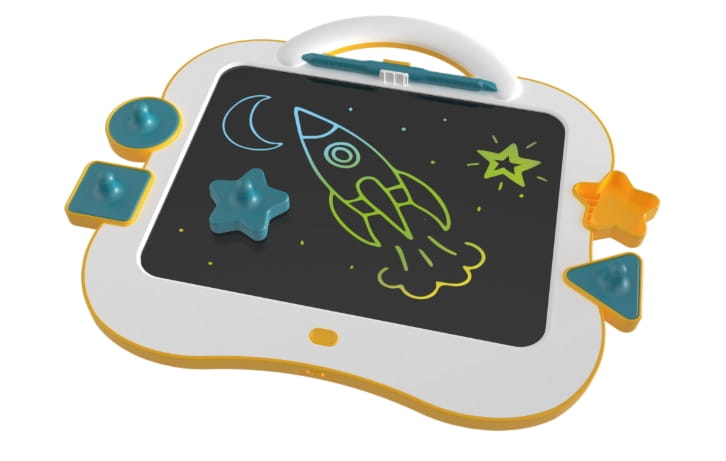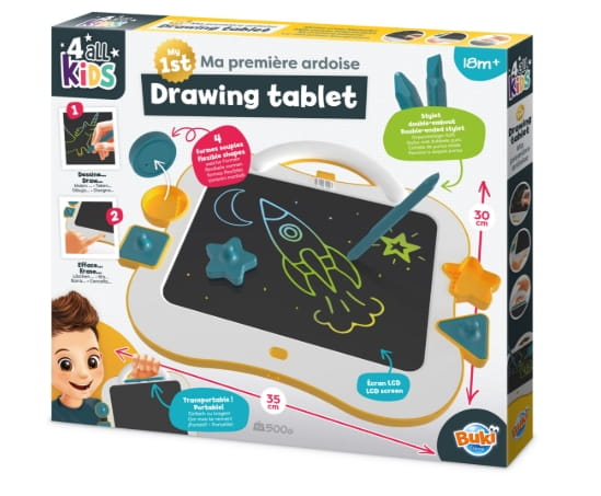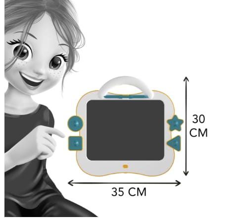 Ten kolorowy tablet LCD do rysowania został zaprojektowany z myślą o najmłodszych artystach już od 18. miesiąca życia. Pozwala dziecku rysować, pisać i odbijać pieczątki bez ryzyka pobrudzenia się lub otoczenia.