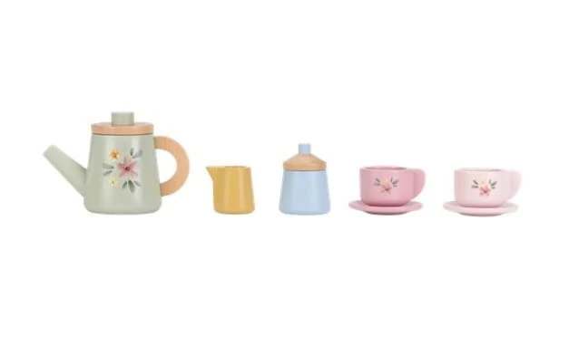 Little Dutch Drewniany Zestaw Tea FSC to zestaw do zabawy w przyjęcie herbaciane dla dzieci od 2 lat. W komplecie czajniczek, dzbanek na mleko, cukierniczka, filiżanki ze spodkami, łyżeczki i taca. Drewno FSC, bezpieczne farby na bazie wody. Rozwija kreatywność, motorykę małą i umiejętności społeczne.