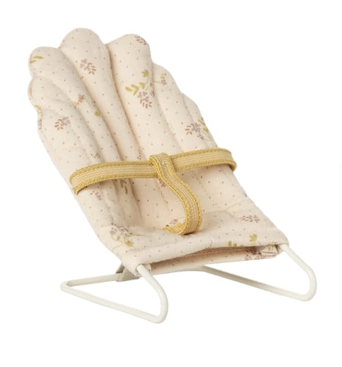 Niania Maileg z metalową podstawą i piękną tkaniną ułatwia usypianie królików w rozmiarze mikro. Idealna do domków i kącików do zabawy, zapewnia realistyczną i przytulną aranżację.