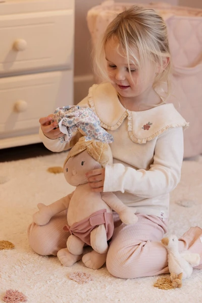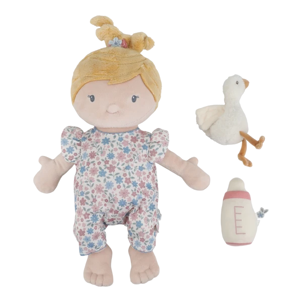 Poznaj Julię uroczą i mięciutką laleczkę od Little Dutch, która z radością stanie się najlepszą przyjaciółką Twojego dziecka. Upięte włosy w kucyk ze słodką gumką w kwiatki oraz kwiecistym kombinezonie zachwyca delikatnym, dziewczęcym urokiem.