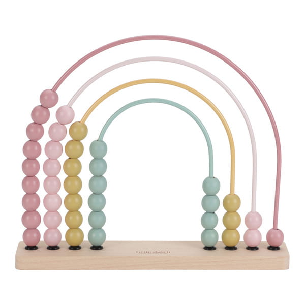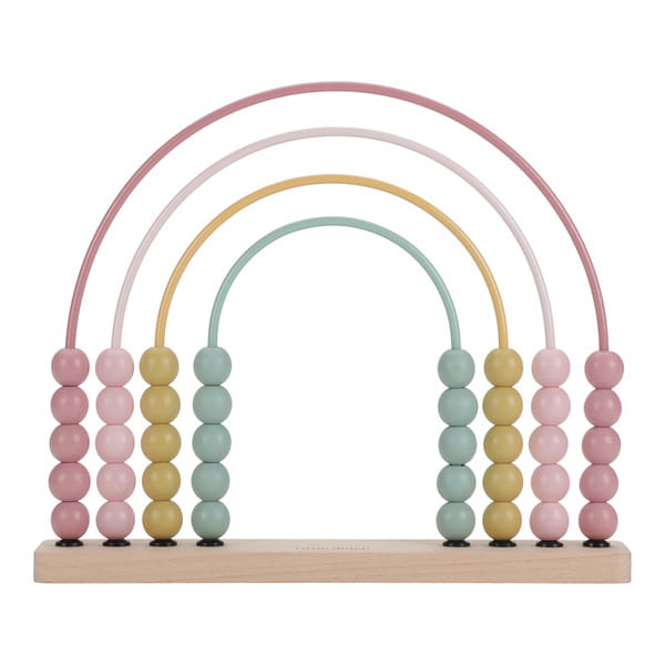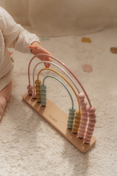 Liczydło Fairy Garden od Little Dutch – drewniana zabawka edukacyjna w kształcie tęczy, idealna do nauki liczenia i rozpoznawania kolorów dla dzieci powyżej 12 miesięcy.