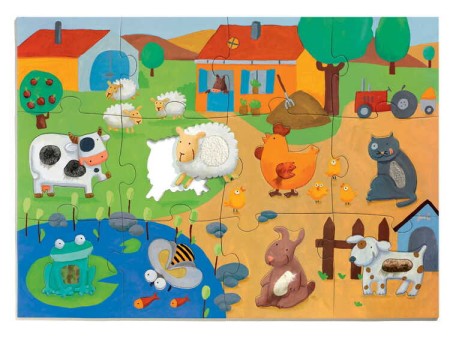 DJECO Puzzle Sensoryczne, Farma, Edukacyjne Puzzle Drewniane, Zmysłowa Zabawa, Dla dzieci 1+