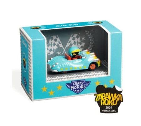 Samochodzik należy do serii Djeco Crazy Motors, inspirowanej legendami świata motoryzacji, takimi jak Michael Schumacher czy Niki Lauda. Każdy model wykonany jest z metalu oraz pojedynczych plastikowych elementów, które nadają mu wyjątkowy charakter. BlueGun posiada metalowe zawieszenie, gumowe opony oraz metaliczne malowanie, dzięki czemu prezentuje się niezwykle efektownie. Stały kierowca z obracaną głową dodaje zabawie dynamiki i realistycznego charakteru.