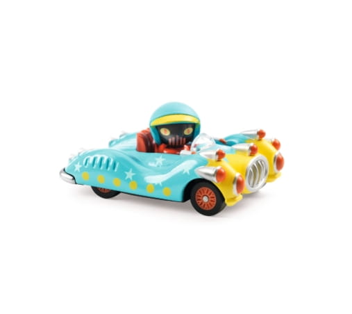 BlueGun z kolekcji Djeco Crazy Motors to prawdziwa gwiazda wyścigów! Jego oślepiające przednie lampy torują mu drogę do zwycięstwa, a gwiazdki na karoserii symbolizują zdobyte trofea. Metalowy samochodzik z gumowymi oponami, metalowym zawieszeniem i obrotową głową kierowcy, idealny dla dzieci w wieku 3–9 lat.