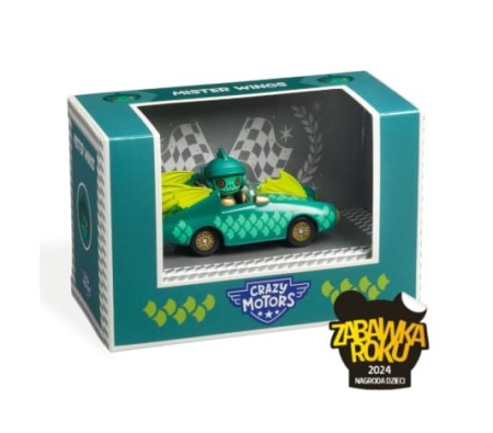 Czy ktoś potrzebuje pomocy? Mister Wings to niezwykły samochodzik z kolekcji Djeco Crazy Motors, który niczym latająca ryba wzbija się w powietrze, aby nieść pomoc każdemu w potrzebie. Charakterystyczne łuski na karoserii sprawiają, że pojazdu nie da się przeoczyć!