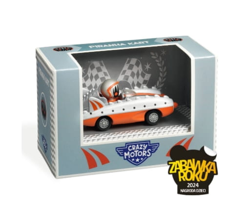 Piranha Kart to samochodzik z nowej kolekcji Djeco Crazy Motors, która zachwyca odjazdowymi projektami inspirowanymi legendami światowych wyścigów. Model wykonano z metalu i pojedynczych plastikowych elementów, co zapewnia dużą wytrzymałość oraz wyjątkowy wygląd. Gumowe opony i metalowe zawieszenie gwarantują płynną i dynamiczną jazdę, a metaliczne malowanie podkreśla niepowtarzalny styl pojazdu.
