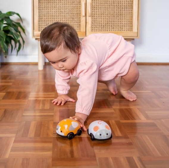 Pojazdy Naciągane Kot i Mysz od Tiger Tribe to urocze pojazdy dla maluszków, które jeżdżą po lekkim naciągnięciu – bez baterii! Idealne dla dzieci 6 mies.–4 lata, wspierają motorykę i zachęcają do raczkowania oraz chodzenia. Doskonałe dla małych rączek.