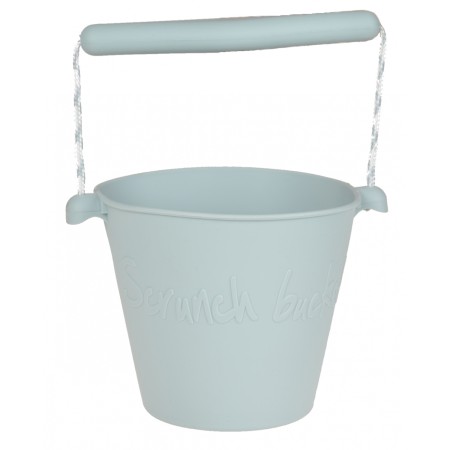 Scrunch Bucket błękitne składane wiaderko do wody i piasku o pojemności 1,5 l. Lekkie, elastyczne, wykonane z bezpiecznego silikonu, idealne na plażę i do domu. Łatwe do przechowywania i czyszczenia.
