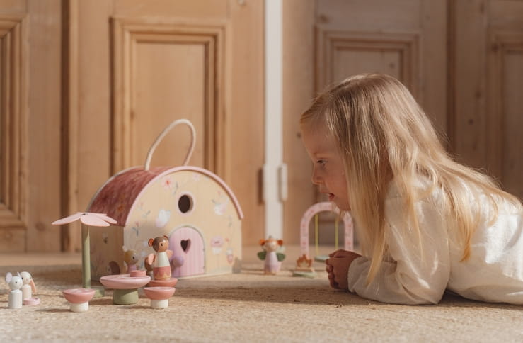 Leśny domek Fairy Garden FSC od Little Dutch – dwupiętrowy domek z figurkami wróżek i zwierząt. Kreatywna zabawa w bajkowym ogrodzie dla dzieci od 3 lat.